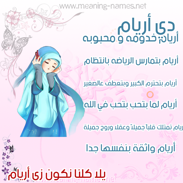 ما معنى اسمي أريام ؟ Hvdhl ? what the meaning of Ariam معاني كلمة أريام قاموس الأسماء و المعاني و الكلمات .