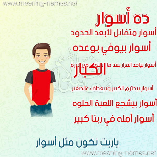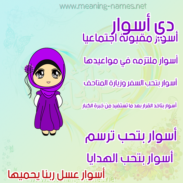 ما معنى اسمي أسوار ؟ Hs,hv ? what the meaning of Aswar معاني كلمة أسوار قاموس الأسماء و المعاني و الكلمات .