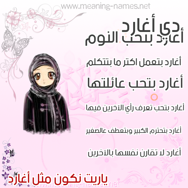 ما معنى اسمي أغارد ؟ Hyhv] ? what the meaning of Agharid معاني كلمة أغارد قاموس الأسماء و المعاني و الكلمات .