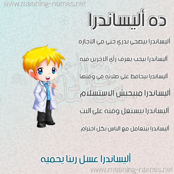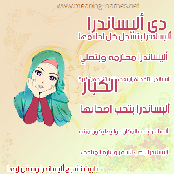 ما معنى اسمي أليساندرا ؟ Hgdshk]vh ? what the meaning of elisandr معاني كلمة أليساندرا قاموس الأسماء و المعاني و الكلمات .