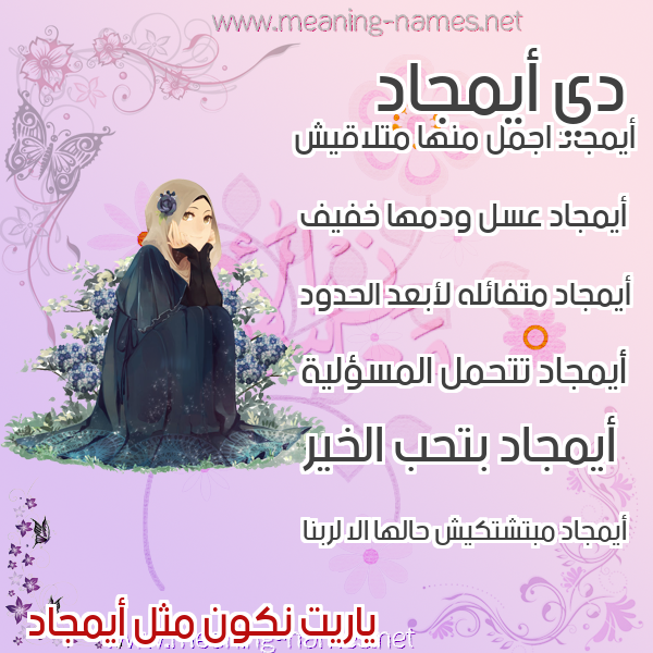 ما معنى اسمي أيمجاد ؟ Hdl[h] ? what the meaning of Amjaad معاني كلمة أيمجاد قاموس الأسماء و المعاني و الكلمات .