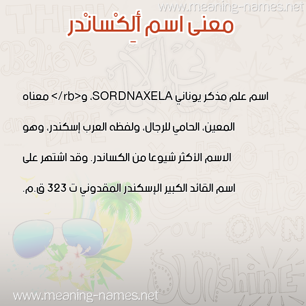 صور اسم أَلِكْسانْدر في قاموس المعاني و الأسماء