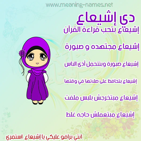 ما معنى اسمي إشيعاع ؟ Yaduhu ? what the meaning of Ishaa معاني كلمة إشيعاع قاموس الأسماء و المعاني و الكلمات .