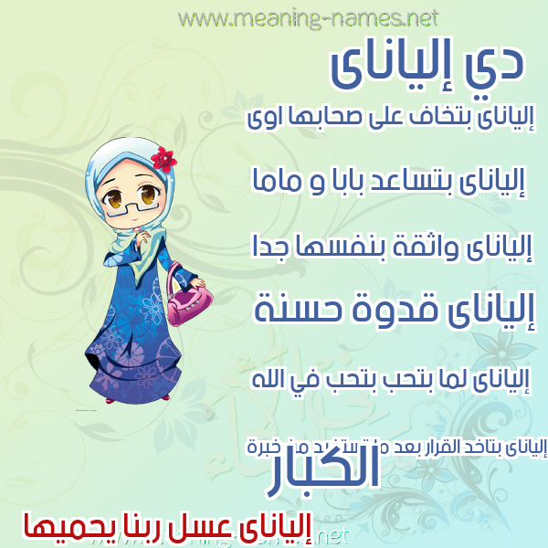 ما معنى اسمي إلياناى ؟ Ygdhkhn ? what the meaning of alianay معاني كلمة إلياناى قاموس الأسماء و المعاني و الكلمات .