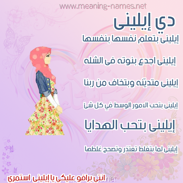 ما معنى اسمي إيلينى ؟ Ydgdkn ? what the meaning of elini معاني كلمة إيلينى قاموس الأسماء و المعاني و الكلمات .