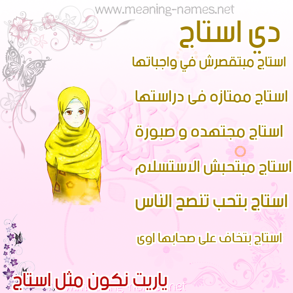 ما معنى اسمي استاج ؟ hsjh[ ? what the meaning of Estaj معاني كلمة استاج قاموس الأسماء و المعاني و الكلمات .