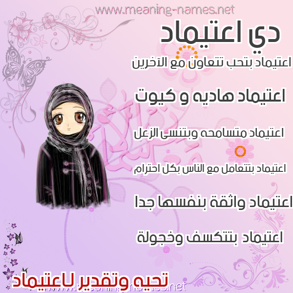 ما معنى اسمي اعتيماد ؟ hujdlh] ? what the meaning of Etimad معاني كلمة اعتيماد قاموس الأسماء و المعاني و الكلمات .