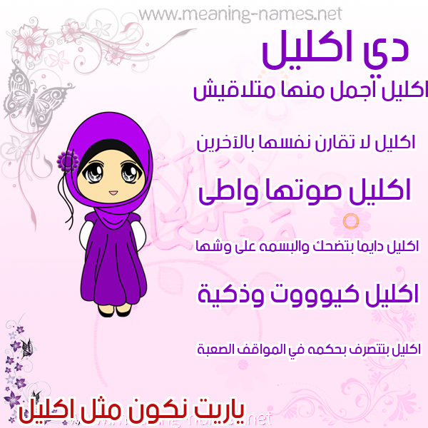 ما معنى اسمي اكليل ؟ h;gdg ? what the meaning of Eklil معاني كلمة اكليل قاموس الأسماء و المعاني و الكلمات .