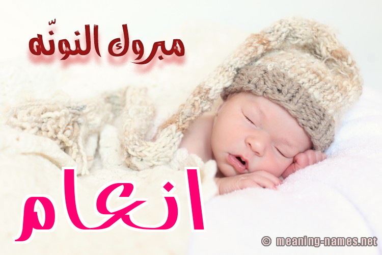 العطاء والكرم وبذل النعمة والمعروف ، إطالة النظر والتفكير ، الهبات ، وعند المسلمين: هداية الله لهم إلى الإسلام.و معنى الاسم انعام : خيرات، تعبير واعتراف بفضل المنعم الإنعام: عطية وهدية والعطية بحسب معطيها والله هو الذى أنعم بك على والديك والإنعام: احسان وزيادة وفى انعام النظر فى الأمر اطالة الفكر فيه وأنت إنعام وفى ظلك ينعم الجميع بحياتهم أنعم الله بك عين من تحبين يا أنعام