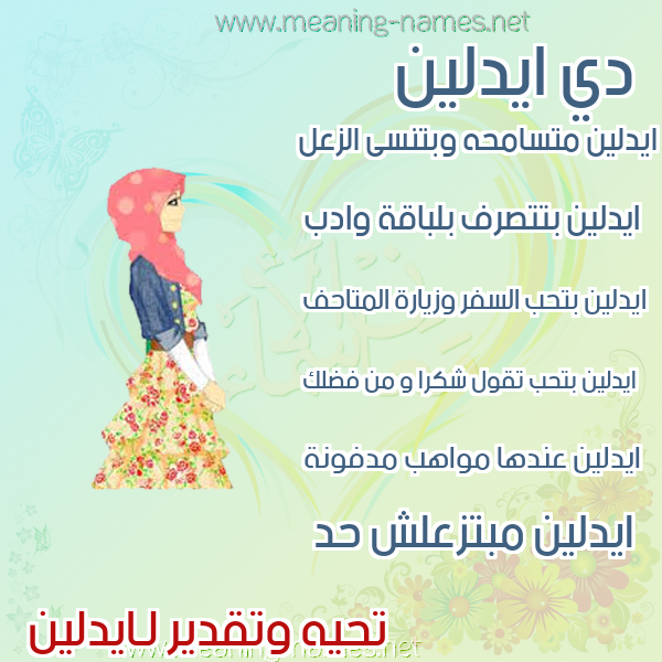 صور اسم ايدلين في قاموس المعاني و الأسماء