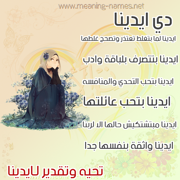 ما معنى اسمي ايدينا ؟ hd]dkh ? what the meaning of idina معاني كلمة ايدينا قاموس الأسماء و المعاني و الكلمات .