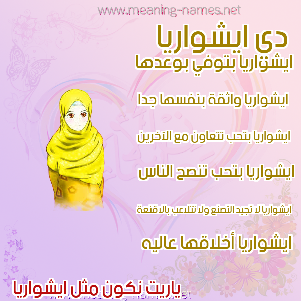 ما معنى اسمي ايشواريا ؟ hda,hvdh ? what the meaning of ishwarya معاني كلمة ايشواريا قاموس الأسماء و المعاني و الكلمات .