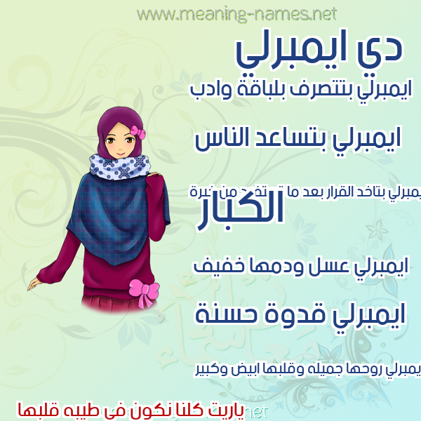 ما معنى اسمي ايمبرلي ؟ hdlfvgd ? what the meaning of EMBERLY معاني كلمة ايمبرلي قاموس الأسماء و المعاني و الكلمات .