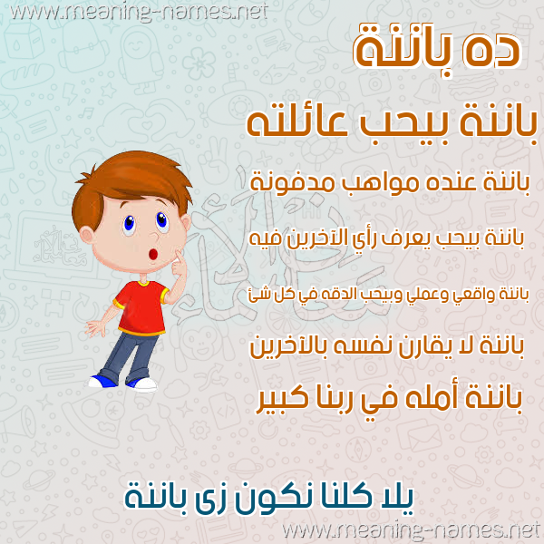 ما معنى اسمي باننة ؟ fhkkm ? what the meaning of Banah معاني كلمة باننة قاموس الأسماء و المعاني و الكلمات .