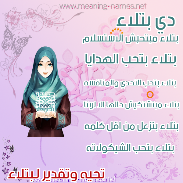 صور اسم بتلاء في قاموس المعاني و الأسماء