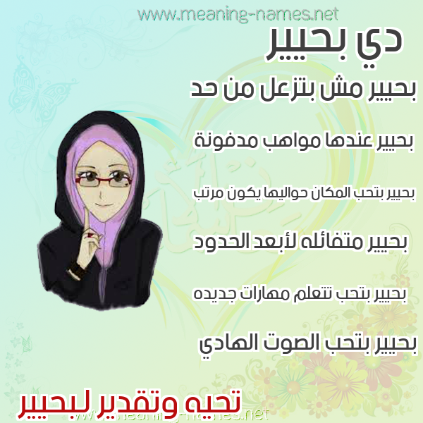 ما معنى اسمي بحيير ؟ fpddv ? what the meaning of Baheer معاني كلمة بحيير قاموس الأسماء و المعاني و الكلمات .