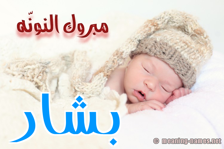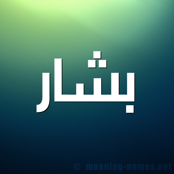 البشوش الطلق المحيّا، الوسيم ، والمُفرِّح بالبشرى .بشَّار بن بُرد ( 714-784م.) : من كبار شعراء العصر العباسي الأول، امتاز شعره بالجزالة والقوة وقت الجدّ ويهبط وقت الهزل، كان أعمى بشع المنظر والعمى، متبرماً بالناس، شديد السخرية، لاذع الهجاء ، هجا المهدي فسخط عليه ، ورآه مرّة يؤذن وهو سكران فرماه بالزندقة ، فضُرب حتى مات، له ديوان شعر مطبوع *(16).و كثير البشرو معنى الاسم بشار : مباشرة، ملامسة.