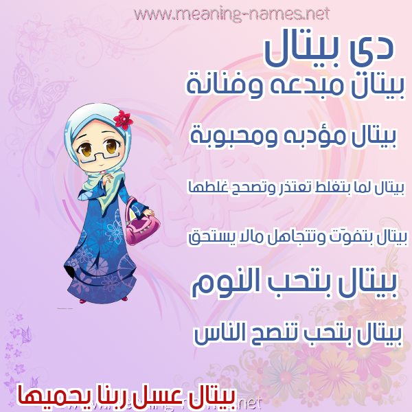 ما معنى اسمي بيتال ؟ fdjhg ? what the meaning of bital معاني كلمة بيتال قاموس الأسماء و المعاني و الكلمات .