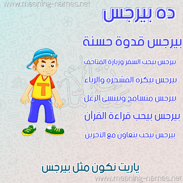 ما معنى اسمي بيرجس ؟ fdv[s ? what the meaning of Barjes معاني كلمة بيرجس قاموس الأسماء و المعاني و الكلمات .