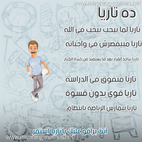 ما معنى اسمي تاريا ؟ jhvdh ? what the meaning of taria معاني كلمة تاريا قاموس الأسماء و المعاني و الكلمات .