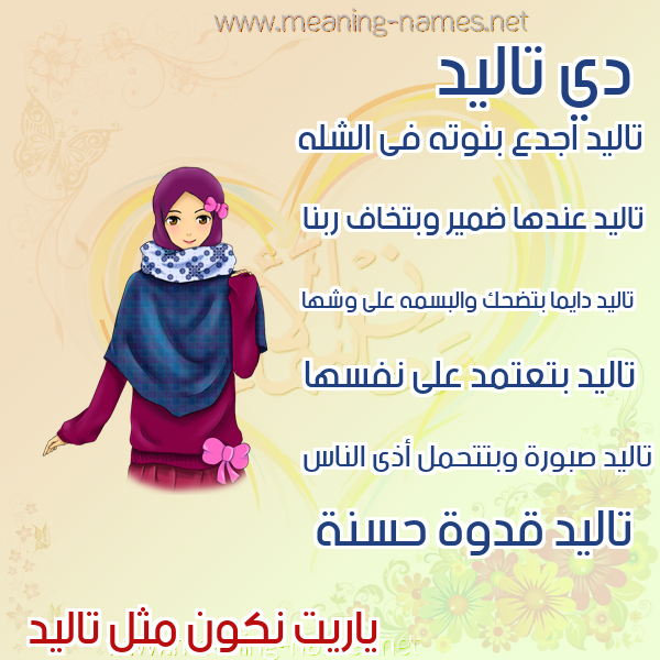 ما معنى اسمي تاليد ؟ jhgd] ? what the meaning of Taled معاني كلمة تاليد قاموس الأسماء و المعاني و الكلمات .
