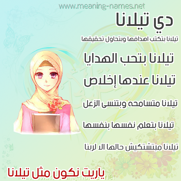 ما معنى اسمي تيلانا ؟ jdghkh ? what the meaning of tilana معاني كلمة تيلانا قاموس الأسماء و المعاني و الكلمات .
