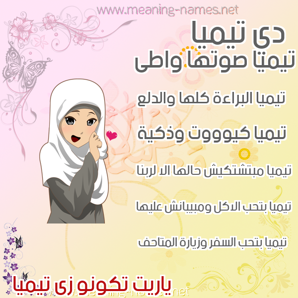 ما معنى اسمي تيميا ؟ jdldh ? what the meaning of timia معاني كلمة تيميا قاموس الأسماء و المعاني و الكلمات .