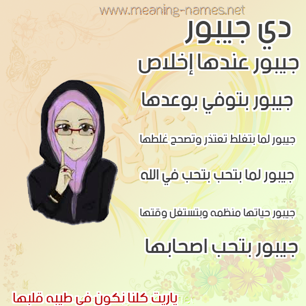 ما معنى اسمي جيبور ؟ [df,v ? what the meaning of Jabour معاني كلمة جيبور قاموس الأسماء و المعاني و الكلمات .