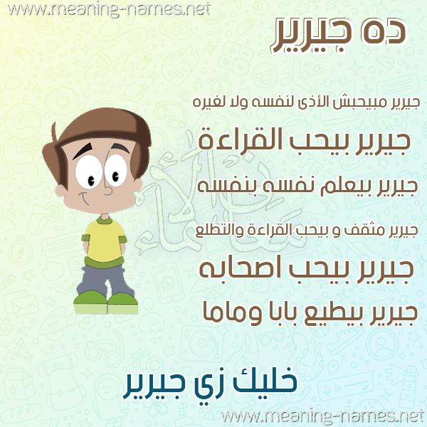 ما معنى اسمي جيرير ؟ [dvdv ? what the meaning of Jareer معاني كلمة جيرير قاموس الأسماء و المعاني و الكلمات .