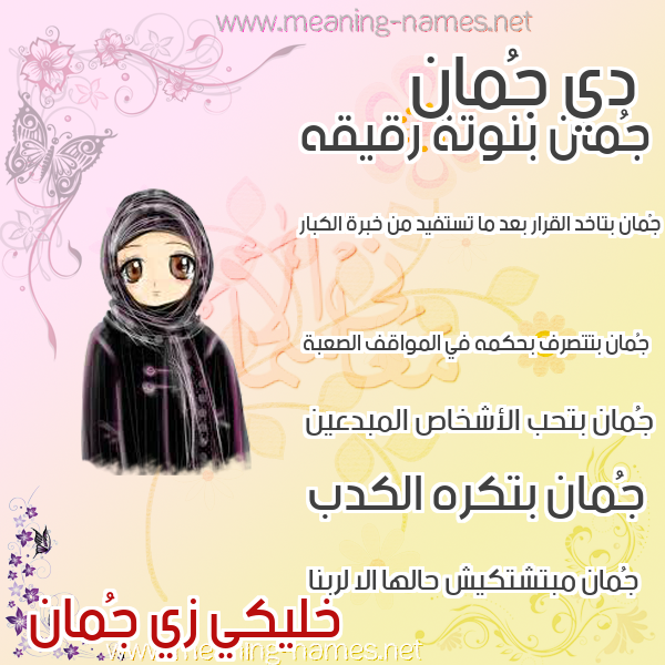 صور اسم جُمان في قاموس المعاني و الأسماء