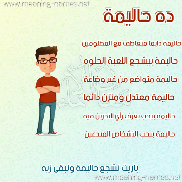 ما معنى اسمي حاليمة ؟ phgdlm ? what the meaning of Halima معاني كلمة حاليمة قاموس الأسماء و المعاني و الكلمات .