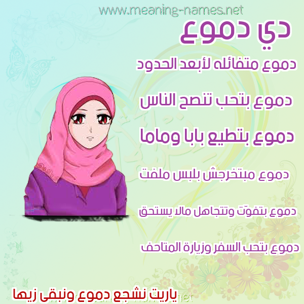 ما معنى اسمي دموع ؟ ]l,u ? what the meaning of Dmoa معاني كلمة دموع قاموس الأسماء و المعاني و الكلمات .