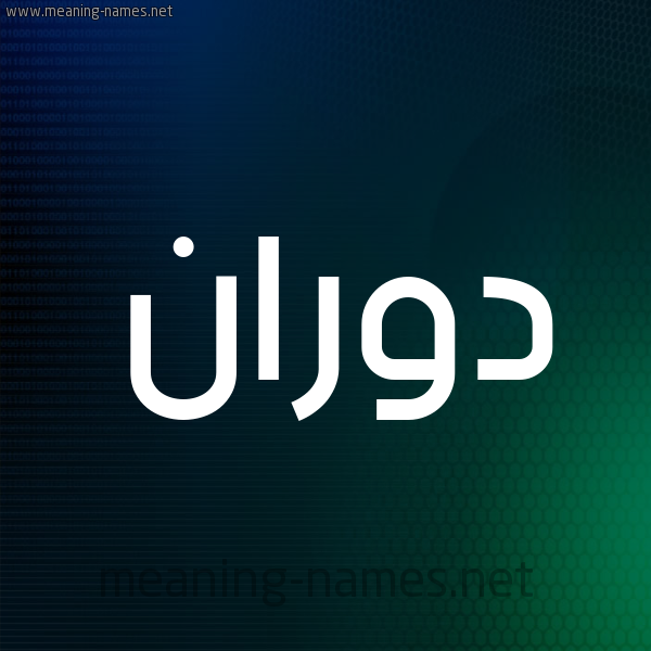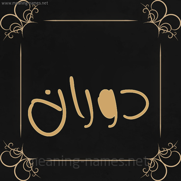 دورانمعنى الاسم دورانأصل الاسم أجنبياسم أيرلندي يطلق على الذكور والإناث، ويعني الغريب أو الأجنبي الذي يتواجد في غير موطنه، ويعتبر من الأسماء الجديدة للمواليد. وصاحب اسم دوران هو شخص يحب المغامرة والتغيير في حياته، يسعى لتحقيق النجاح ولا يعرف اليأس.