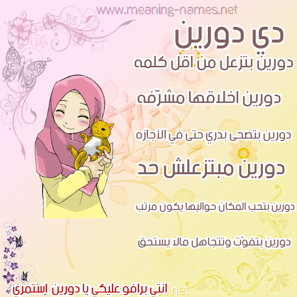 ما معنى اسمي دورين ؟ ],vdk ? what the meaning of doreen معاني كلمة دورين قاموس الأسماء و المعاني و الكلمات .