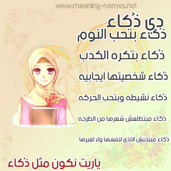 صور اسم ذُكاء في قاموس المعاني و الأسماء