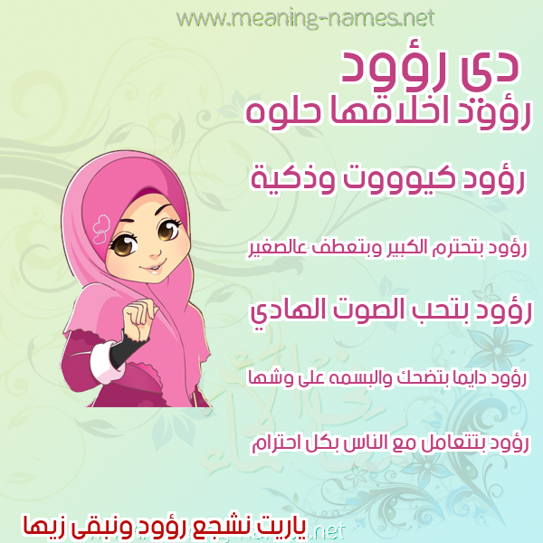 ما معنى اسمي رؤود ؟ vc,] ? what the meaning of Raood معاني كلمة رؤود قاموس الأسماء و المعاني و الكلمات .