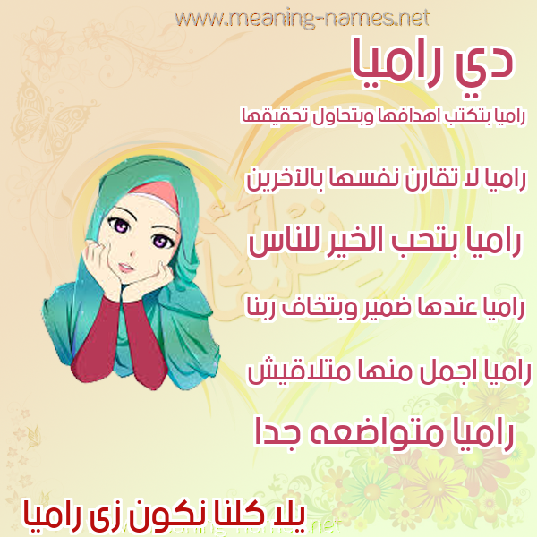 ما معنى اسمي راميا ؟ vhldh ? what the meaning of ramiaa معاني كلمة راميا قاموس الأسماء و المعاني و الكلمات .