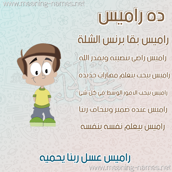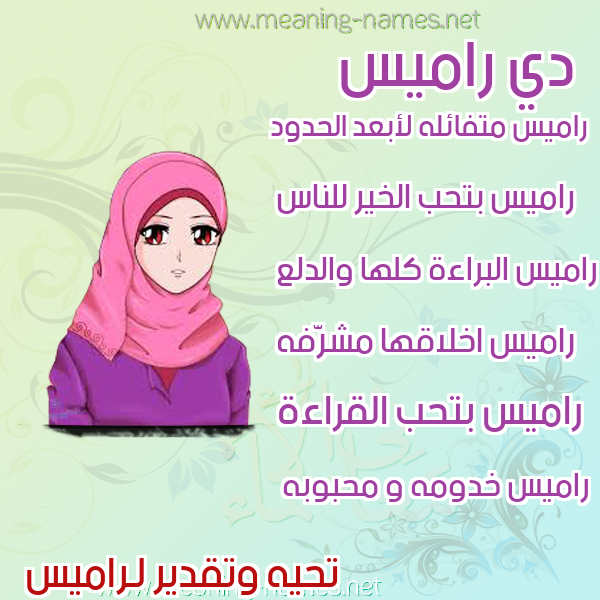 ما معنى اسمي راميس ؟ vhlds ? what the meaning of Ramis معاني كلمة راميس قاموس الأسماء و المعاني و الكلمات .
