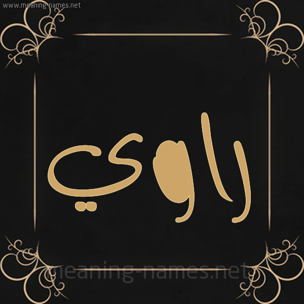 ( رَاوِيَة ) : الذي يروي الحديث والشِّعر والقصص ، الريَّان ، الماء الكثير ، الرجل الذي يعمل في السِّقاية ، الذي يقوم على الخيل ، والحبْل الذي يُثبِّت الأمتعة .رَاوِيَة : مؤنث رَاوِي ، المزادة الحاوية على الماء ، ورَاوِيَة القوم : سيِّدهم .و معنى الاسم راوي : من ينقل الأخبار، ويروي الأحاديث والشعر.