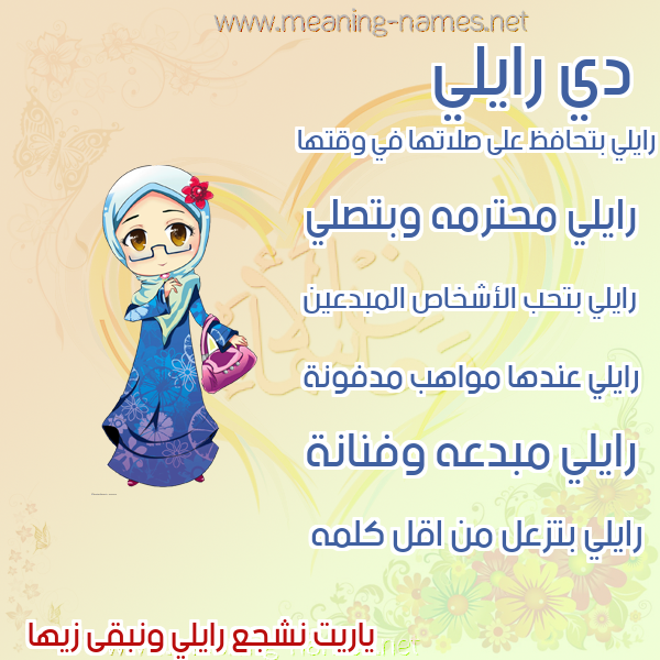 ما معنى اسمي رايلي ؟ vhdgd ? what the meaning of raily معاني كلمة رايلي قاموس الأسماء و المعاني و الكلمات .