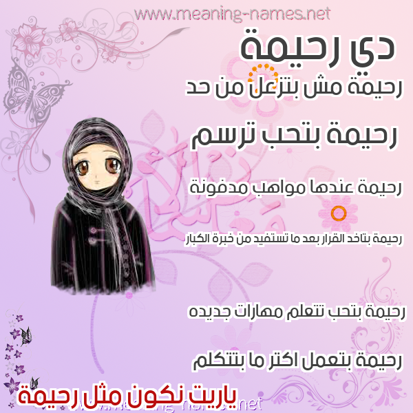 صور اسم رحيمة في قاموس المعاني و الأسماء