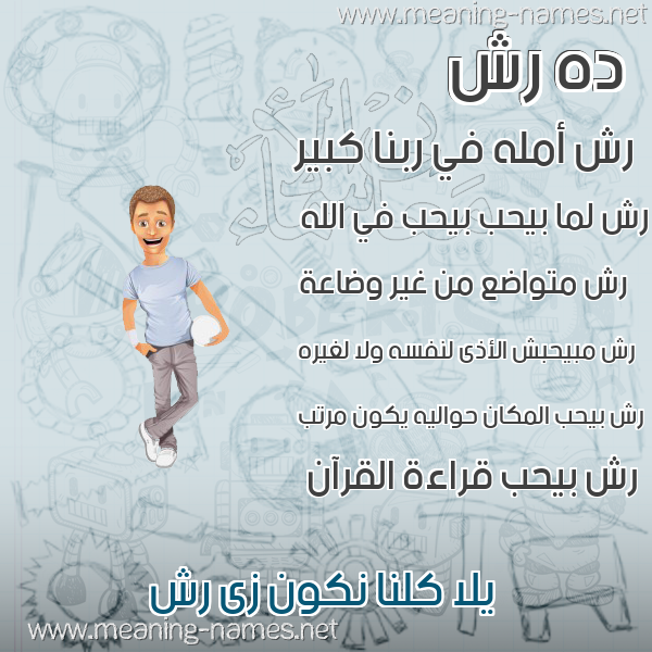 ما معنى اسمي رش ؟ va ? what the meaning of RSH معاني كلمة رش قاموس الأسماء و المعاني و الكلمات .