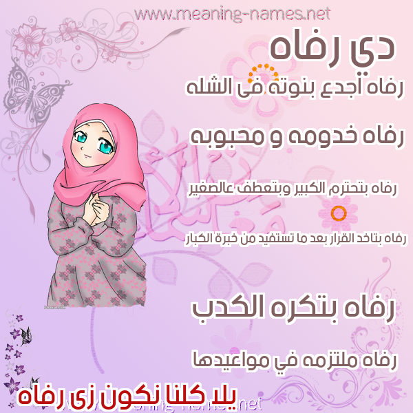 صور اسم رفاه في قاموس المعاني و الأسماء