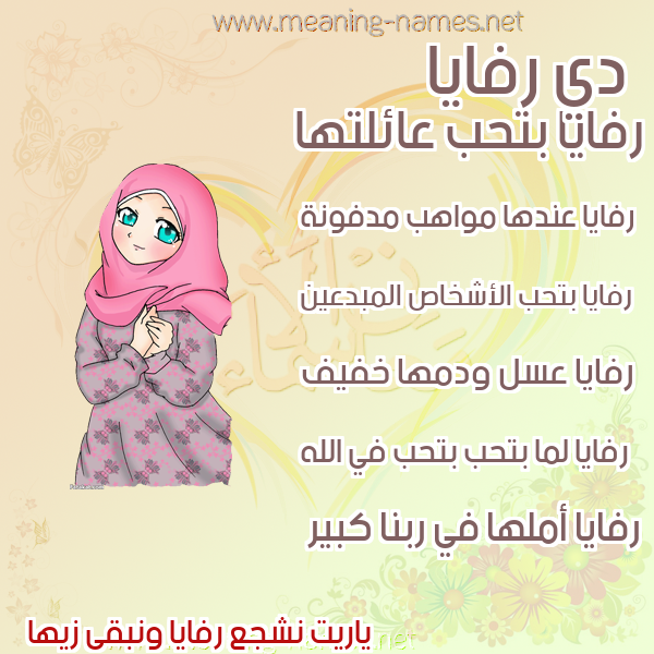 صور اسم رفايا في قاموس المعاني و الأسماء
