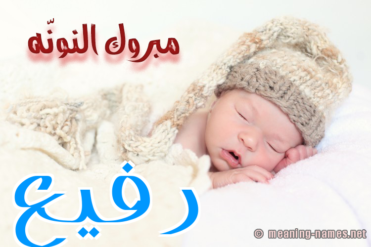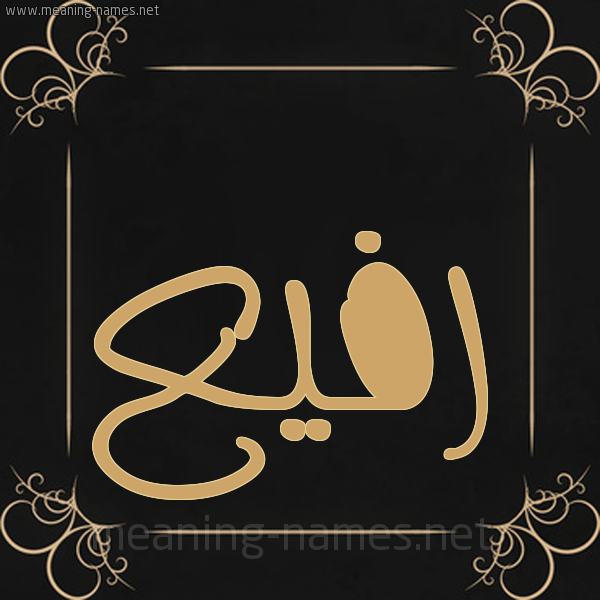 ( رَفيْعَة ) : العالي القدر والشأن ، الشريف ، والمرتفع .و اسم علم مذكر عربي، على صيغة الصفة المشبهة،