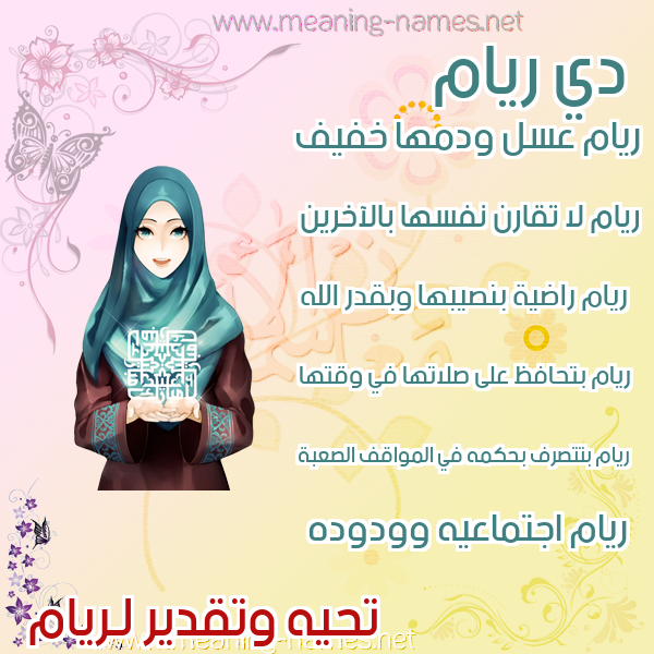 صور اسم ريام في قاموس المعاني و الأسماء