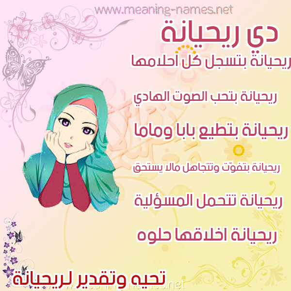 صور اسم ريحيانة في قاموس المعاني و الأسماء