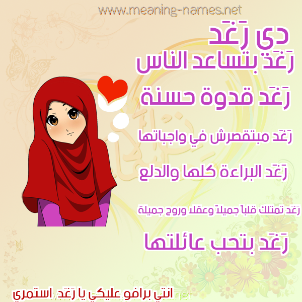 صور اسم رَغَد في قاموس المعاني و الأسماء