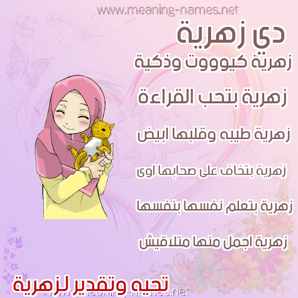 صور اسم زهرية في قاموس المعاني و الأسماء