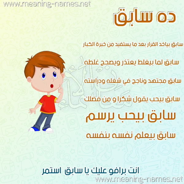 ما معنى اسمي سابق ؟ shfr ? what the meaning of SABQ معاني كلمة سابق قاموس الأسماء و المعاني و الكلمات .